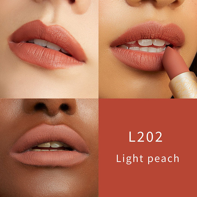 L202 Light Peach: Creamy peach, nude with orange hue, suitable for daily use.