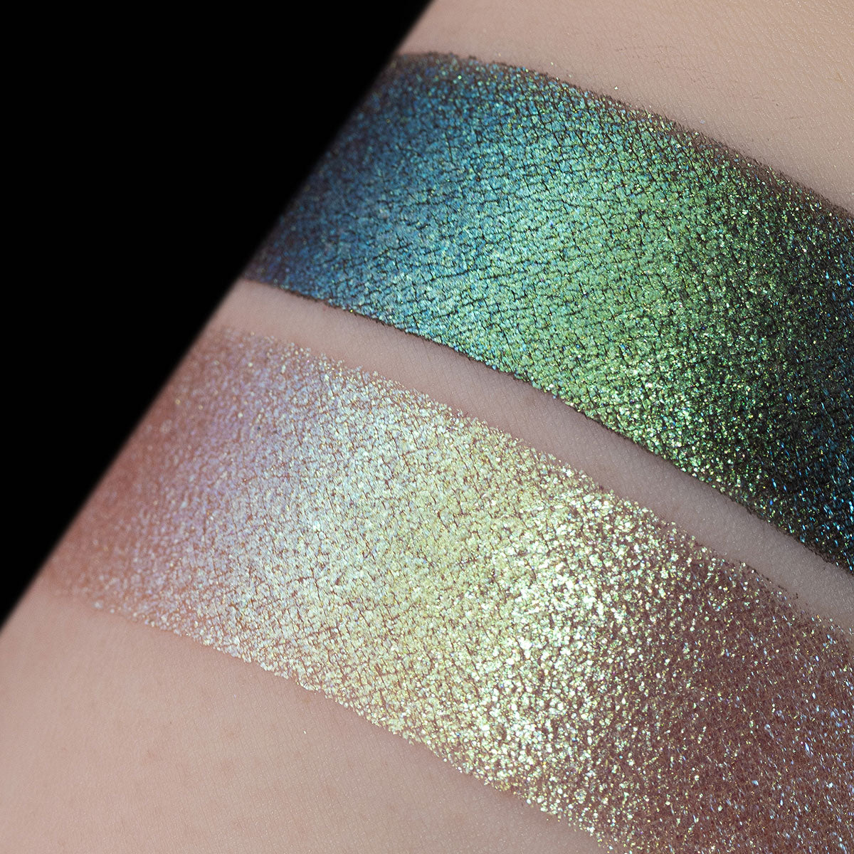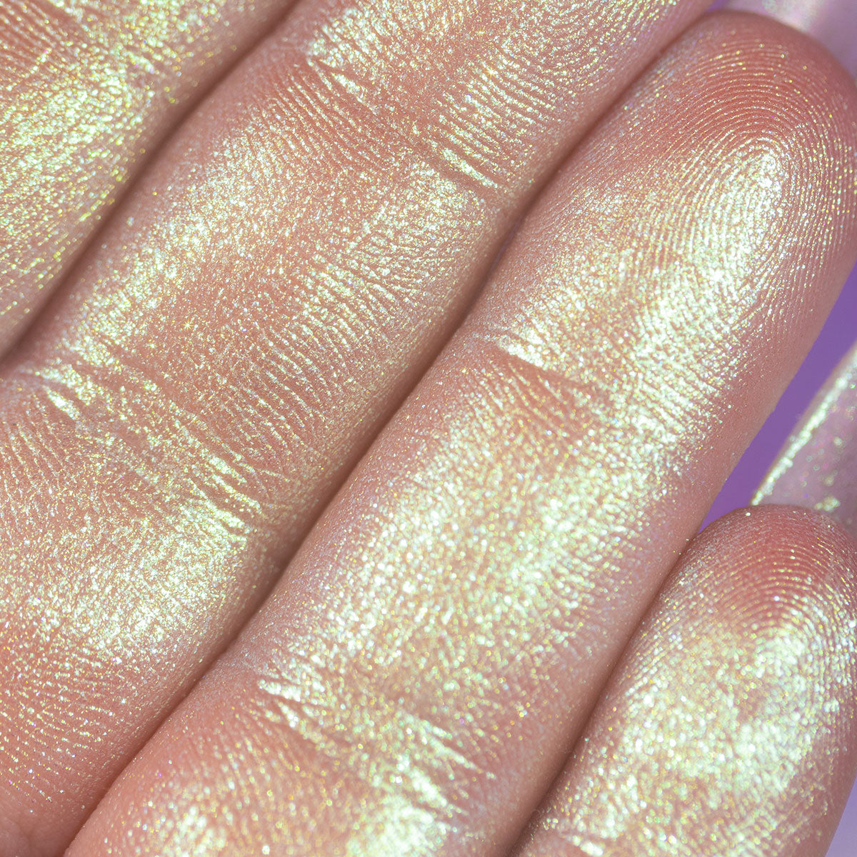 Color: Super sparkly shimmer eyeshadow in light gold-green with lots of fine glitters