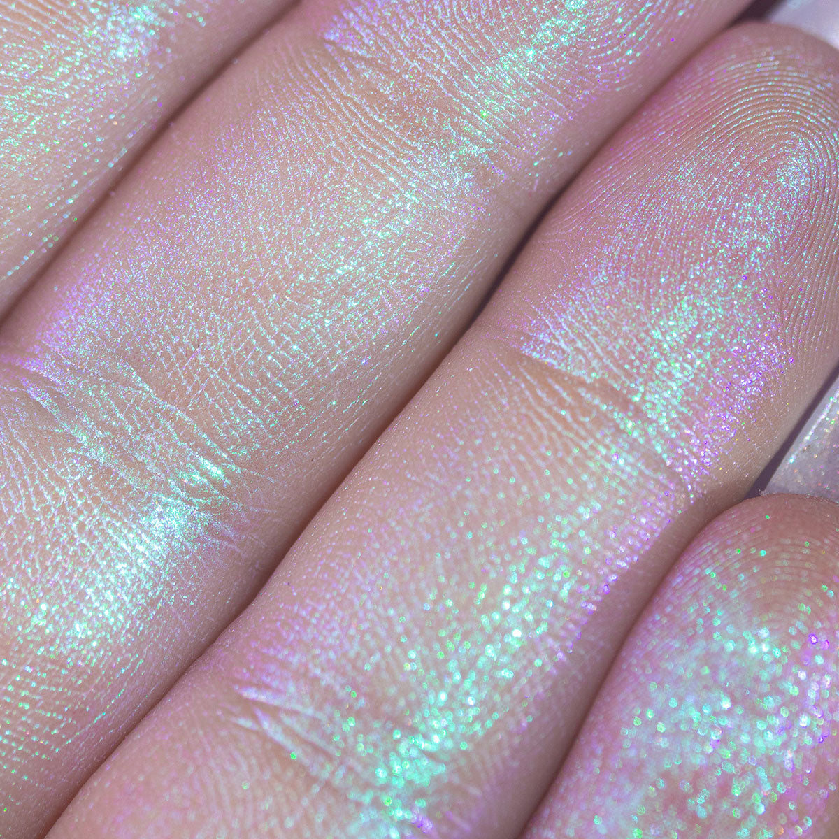 Color: White base with purple, light green, and pink multichrome effect.