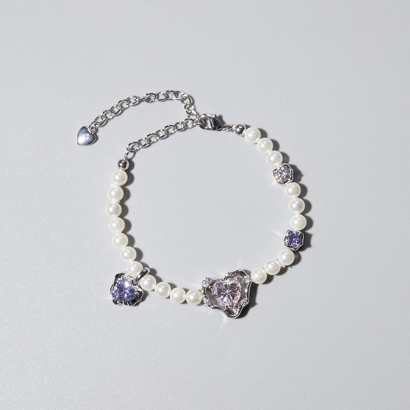 Jewel Story: Pink Heart Embellished Pearl Bracelet