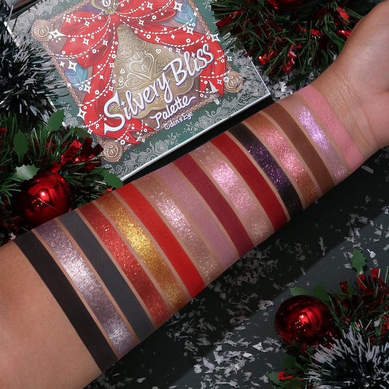 Step into a world of holiday cheer with the Silvery Bliss Palette! Think cozy, classic reds and soft, sparkling golds that bring all the warmth and magic of Christmas morning to life. Each shade feels like a little piece of holiday joy, designed to add a touch of festive sparkle to even the simplest moments. It’s perfect for everything from cozy gatherings by the fireplace to a snowy evening out, adding that soft glow to every look.