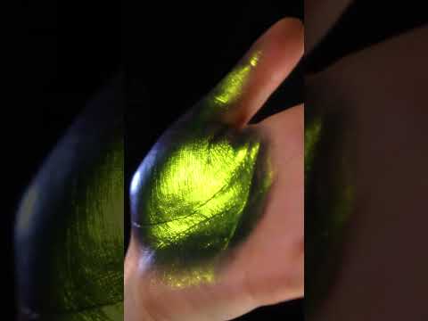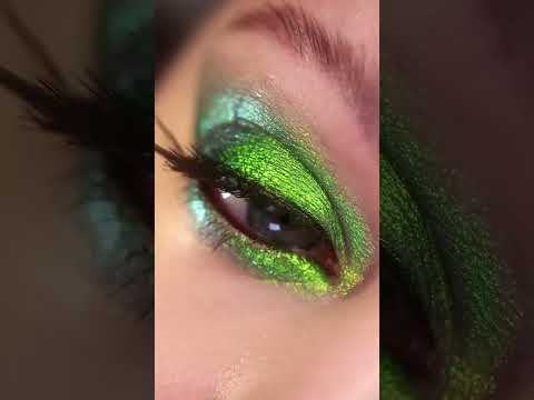 Color: Green base with blue, teal, and green shifting effects. Shimmer Multichrome eyeshadow with intense metallic shine.