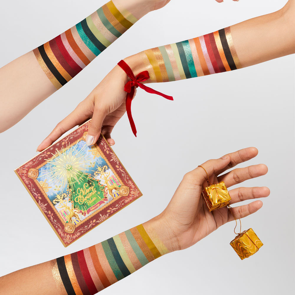 The Merry Christmas palette is inspired by the classic Christmas color scheme. The outer packaging of the red palette is matched with red and green colors along with Christmas elements. The colors of the eyeshadows includes a special multichrome color Elf Wish, which has a grass green background with color shiftings of pink, green and gold. We truly hope that our Merry Christmas palette will enable your holiday makeup creation with some unique makeup looks.
