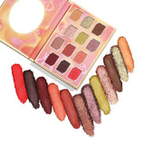 12 colors, including 3 different textures, 8 matte eyeshadows, 3 shimmer eyeshadows, 1 multi-chrome eyeshadow.
